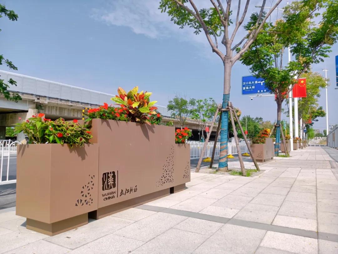 在長(zhǎng)江新區(qū)的主干道上,一排排整齊的花箱內(nèi)栽滿了盛開(kāi)的花卉,色彩斑斕,令人賞心悅目。特別是在新區(qū)的標(biāo)志性建筑前,精心設(shè)計(jì)的花壇更是吸引了眾多市民駐足觀賞。